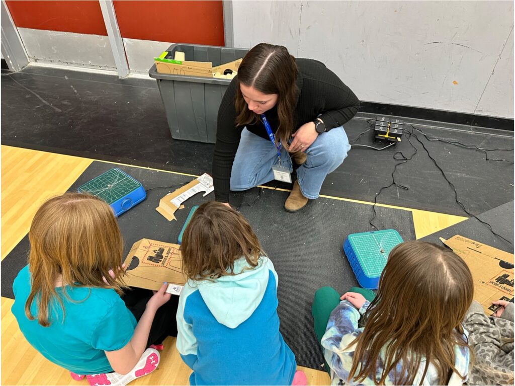 I was very excited to manage the next station: making cardboard airplanes with the ChompSaws. I spoke about this amazing tool in my previous post linked below. This station was a great hands-on experience for me to learn how to introduce the tool and inspire creativity in students.